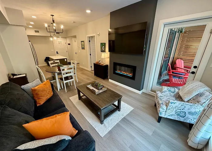 Com piscina privada e pátio, o Sparrowhawk Mountain Resort Dead Mans Flats de 1 quartos está situado no distrito Dead Mans Flats 6 km de Fireweed Glass Studio. Localizado a uma distância de aproximadamente 10 minutos a pé do Grotto Canyon, o apartamento tem vista para a montanha.